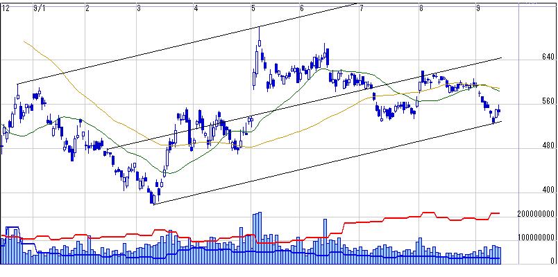 重要な上値抵抗は月足+2σ=642(ちょうど画像①の2番目のラインあたり)