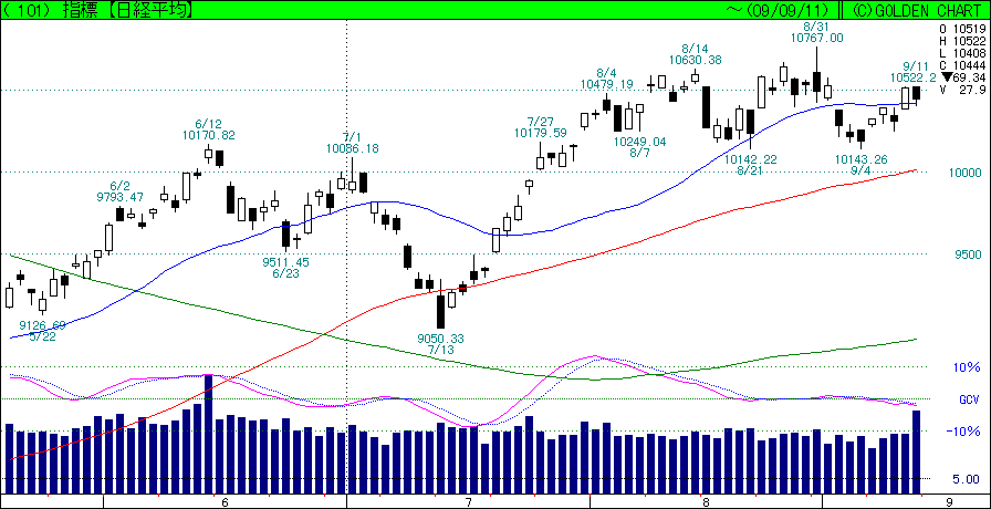 本文にも書いた通り、日経¥10,700は十分にあり得る株価と思いまするが、上げていくにはどうも材料不足かもしれませぬ。ちょっと様子見気分かと…(^^;