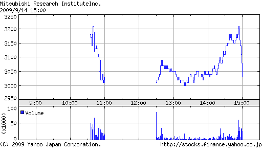 チャートから、3200まで上げた後一瞬で3000あたりまで下げているみたいです。この流れで行くと、明日は3100あたりで寄りついて3250くらいまでは上げてくるのではないかと思います。というわけで、トレダビでも三菱総研を買います。