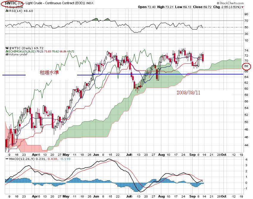 WTIが、2009/09/11先週の金曜深夜に『悪転』してしまった。