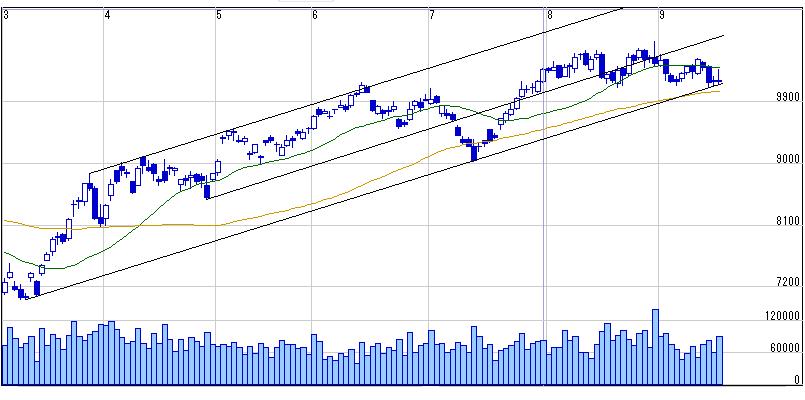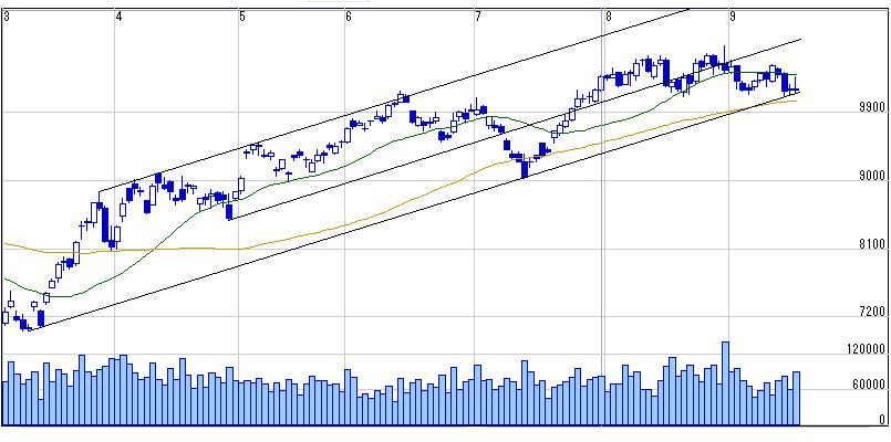 ・ただし、これを割れても画像3の下値支持ライン9950近辺が下値支持として機能する可能性もあり。ちょうどボリバン-3σあたりです。