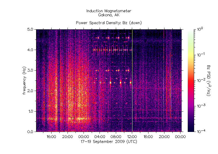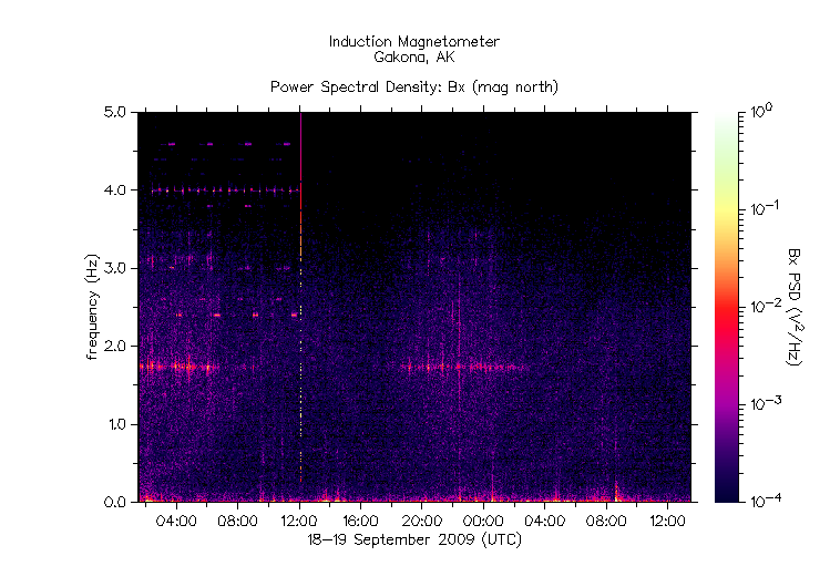 現在の 「Induction Magnetometer」の画像を見ると昨日まで観測された01:00~12:00の間の格子状の斑点が消えた。