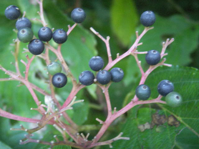 ミズキの黒い実:小鳥が食べる 甘酸っぱい味だが、食欲をそそる雰囲気ではない
