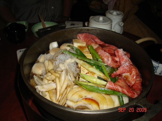 夜・三条の床ですき焼き(同上)