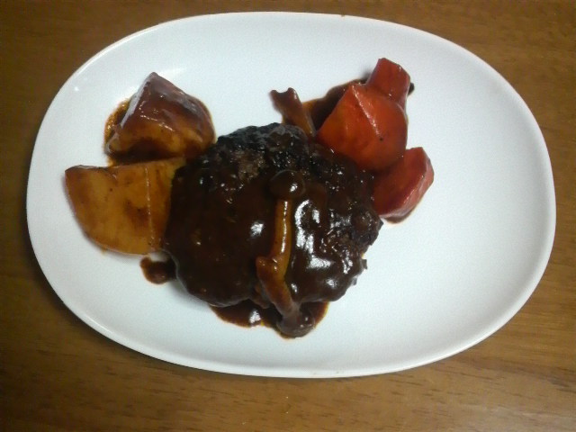 煮込みハンバーグは何度か登場しているも、今回は見た目は良く出来たかもしれませぬ。味はまあまあ…(^^;