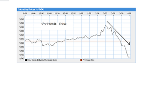 ところが、その直後から一挙に手じまいの動きがでて、大引けまでに160ドル以上下落したわけです。