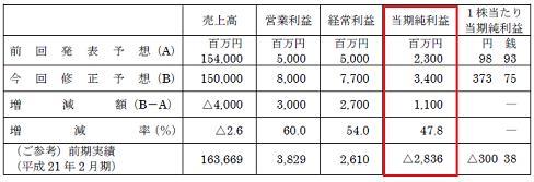 利益は23億から34億へと上方修正となりました。