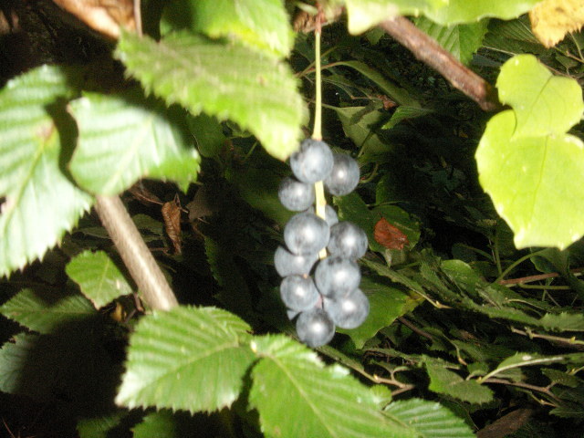 みずみずしいあお黒い房の実で、甘酸っぱく、食べられます