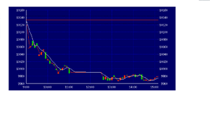 にもかかわらず、日経平均株価は60円安で寄り付いた後、下落を続け、1時半前には168円まで下げ幅を拡大しました。戻りらしい戻りもないままに、154.59円、1.53%の下げで終えています。