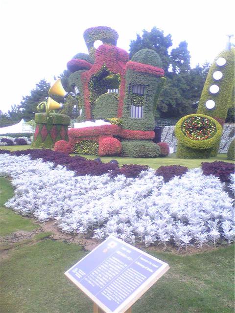 >浜名湖立体花博の浜松モザイカルチャー世界博2009に行き、花が化けて、うなぎいぬとオーケストラができていました