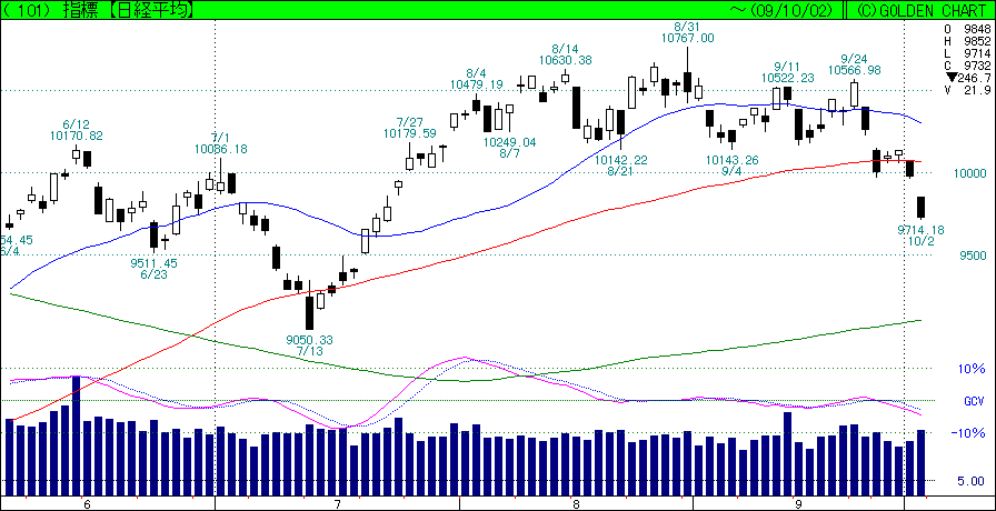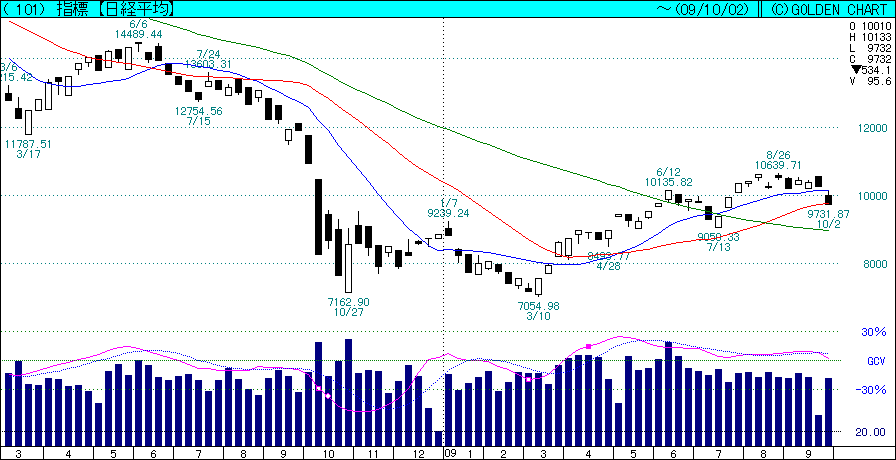 民主党政権の亀井、藤井両大臣の言葉に踊らされている日経平均のようです。これから始まるG7での結果も重要でしょう。