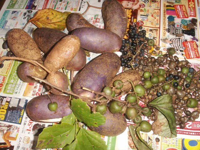 アケビの実は、ほとんど落果し、タヌキやイノシシに食べられ、別のところにはこばれて、糞にまじって落ち、発芽します