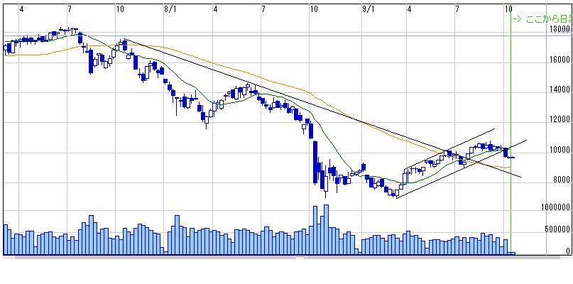 とはいえ07年10月からの上値抵抗ラインを7月に上抜いてるのでこのラインが下値支持線として機能しそう、、、
