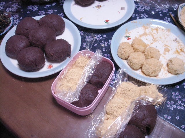 あんの材料が多すぎて、黄な粉のおはぎよりも、ずっとおおきなボタモチになりました。神棚にもお供えし、うんまかったですよ。