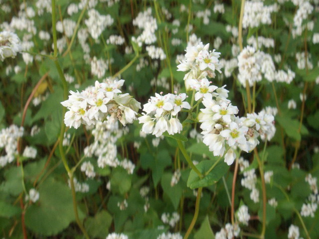 ソバの花が満開です。そばを栽培する農家が増えてます。