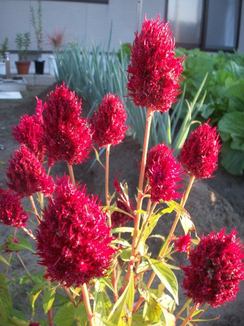 写真2、3:近所の赤いケイトウです これも鶏のトサカに見えるから、鶏頭(ケイトウ)でケイトウとなったので・・・・