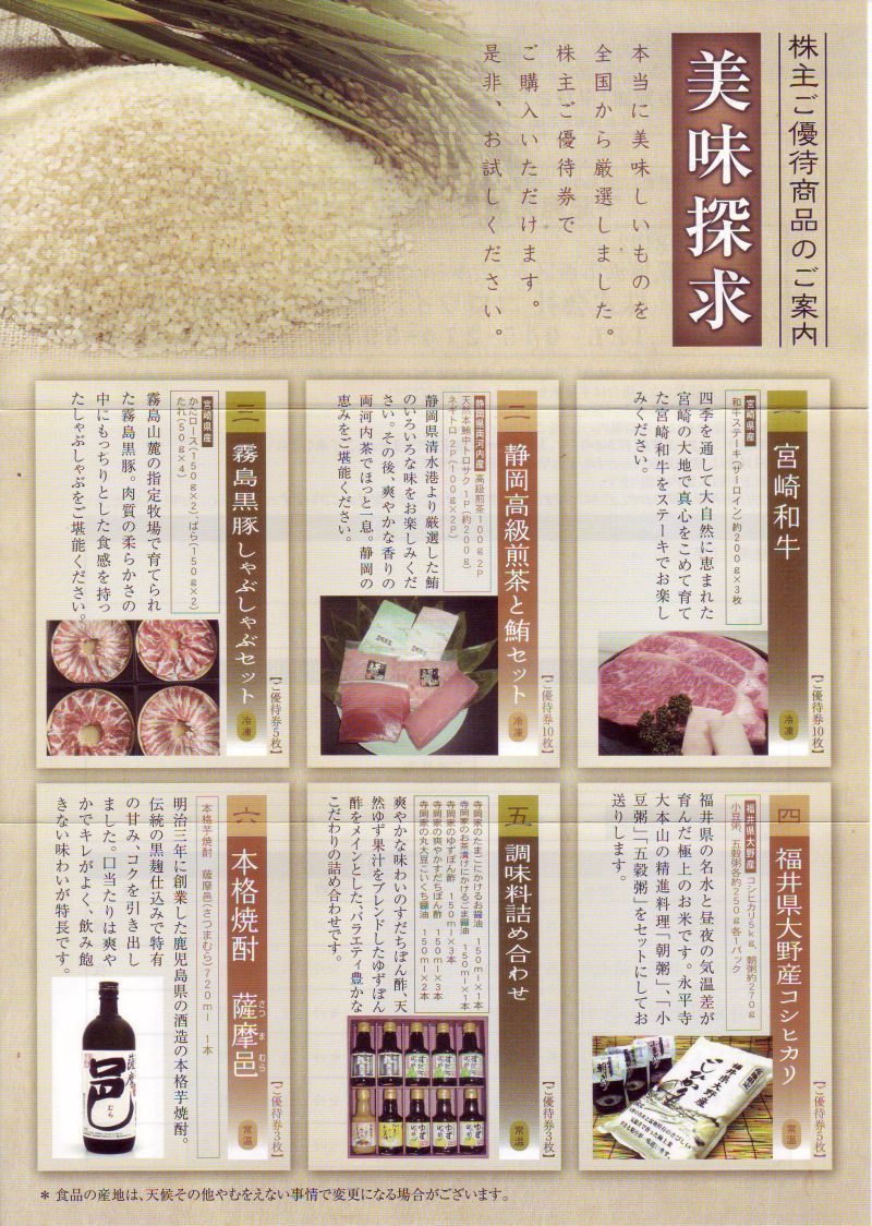 近くに店舗が無いかたは優待券を返送することで写真(右)の様な商品と交換する事もできます。