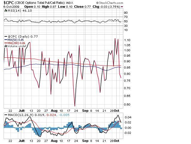 2、2007年10月、プット/コール・レシオが0.8を割った時、マーケットは天井だった。