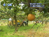 一方、収穫がまだできない品種についてはナシの実が強風で