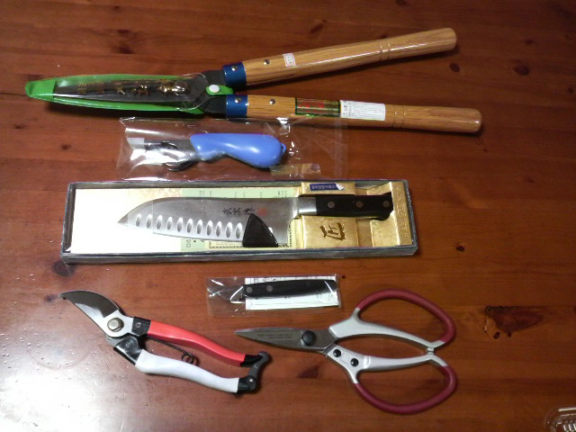 我が家で買ったのは3枚目の写真のとおりで、包丁、刈込み鋏、剪定鋏、栗むきナイフなどを買ってきました。