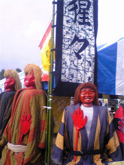 お祭り、猩猩、桶狭間、甲冑、大高緑地:お祭りで猩猩がお尻をたたいてくれます。なまはげの大高編です。桶狭間の戦いの記念の太鼓です。甲冑が500円で着られます。愛もありました。河村市長も来られるようです。