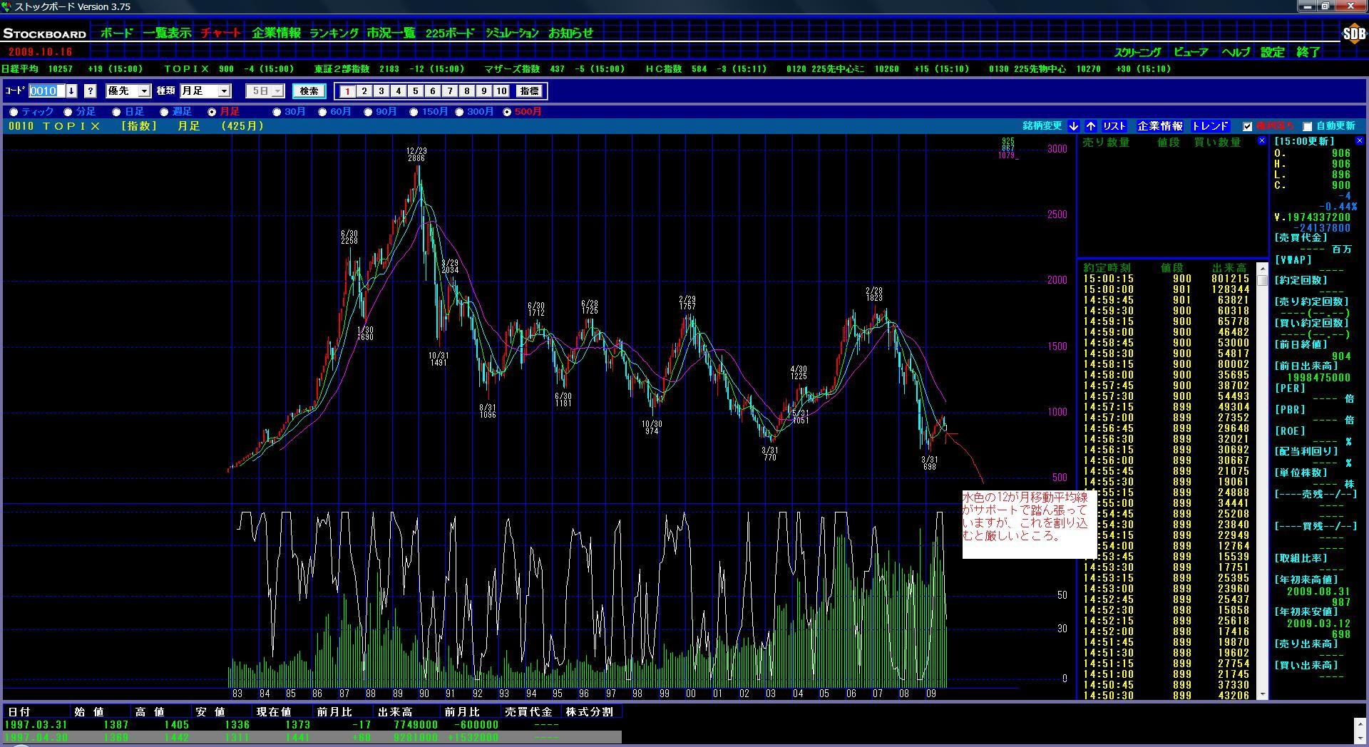 あんまり短期ばかり気にしても仕方がないので3枚目はTOPIXの月足です。