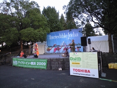 > インドの歌、踊りがステージで披露され、インドの衣装や食べ物などのテントがたくさん出店していました。