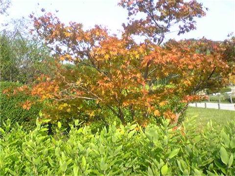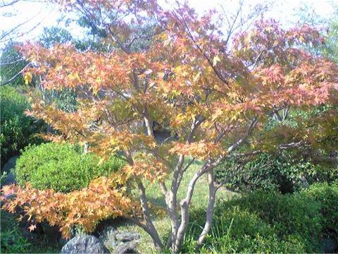 名古屋市内のお家の庭のモミジも皆紅葉し始めており。