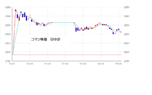 上海市場が堅調であることから、コマツの株価が注目されたようですが、ザラバ動きを見るかぎり、円高の影響のほうが大きいように見えます。一時3%を越える上げ幅だったのですが、結局1.4%高で終えました。