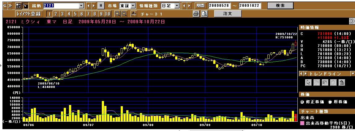 うーん、そうなら、733000円と724000円で1株ずつ、買い指値でお願いしときますぅ