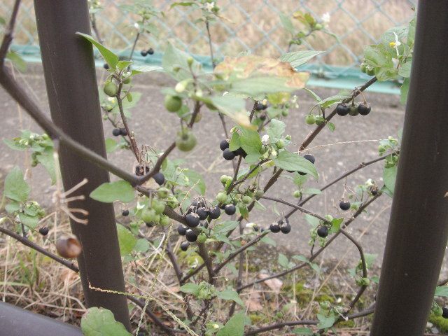 イヌホオズキは、雑草で、毒草です。花は、ナスビの花と良く似ています。実は丸くて黒いです。毒があります。
