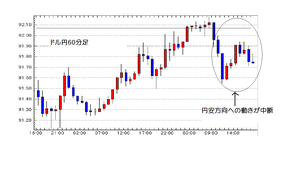 後場の調整は、円安方向への振れが止まって、多少円高方向に逆転したことと、期待に沿わない決算が見られたことによると見ています。