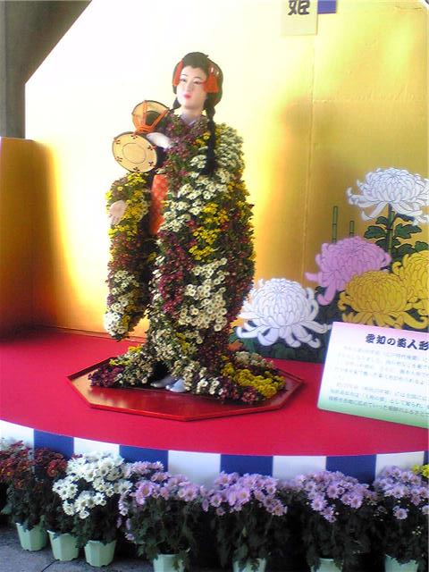 名古屋城 菊人形&菊花大会(愛知県・名古屋市)(なごやじょう きくにんぎょう&きっかたいかい)愛知の菊人形は江戸時代後期に菊の栽培が盛んになり、鳥の形などを菊で作る「菊細工」が作られ始めた。さらに、顔を人形で作り、からだ全体を菊で飾った菊人形が作られるようになり明治20年頃には全国に広まり、愛知県高浜市は「人形の里」として知られ菊人形の技術を各地に広めていった「菊師のふるさと」とも言われてい