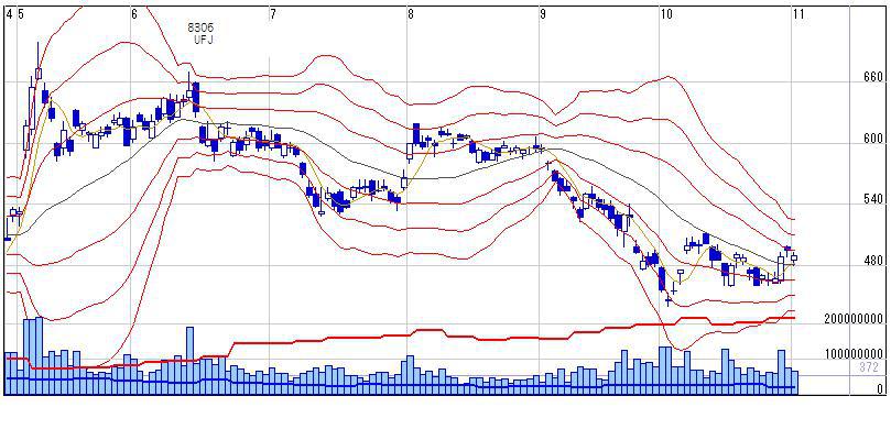 注意)ファンだは無視して日足チャートをざっと眺めただけですので、週足やオシレーターなどあわせて詳細なチャート分析をしたわけではありませんので、決して買いをすすめるものではありません^^;