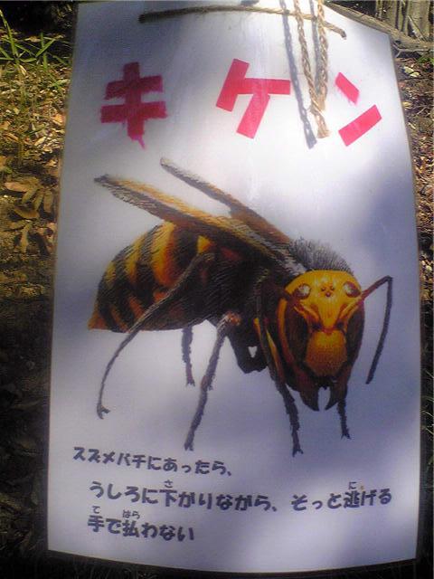最近行くとまた新しい看板が出ていました。20cmもある大きな蜂はいないだろうと思い、通る人が、皆見入っていました。さすがにもう羽音は聞こえません。石の下や、竹の中や木の室に入ってしまったのでしょう。