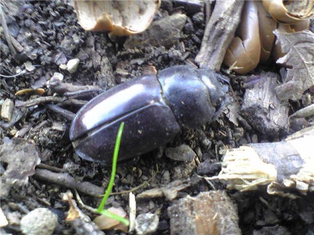 クワガタ、ノコギリクワガタ:クワガタムシがいた。散歩中に黒い光るものが見えた。まだ死んだばかりのようなノコギリクワガタのメスだ。名古屋市の天白公園にもまだこんなものがいる。どこかで卵から幼虫が孵っているだろう。想像するだけで楽しい。この森にいるようだ。