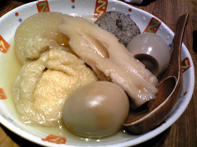 写真に写っているもので、私が食べたことがあるのは、大根、たまご、餅入り巾着ですね。