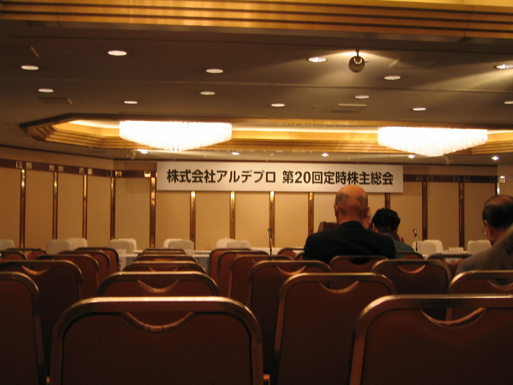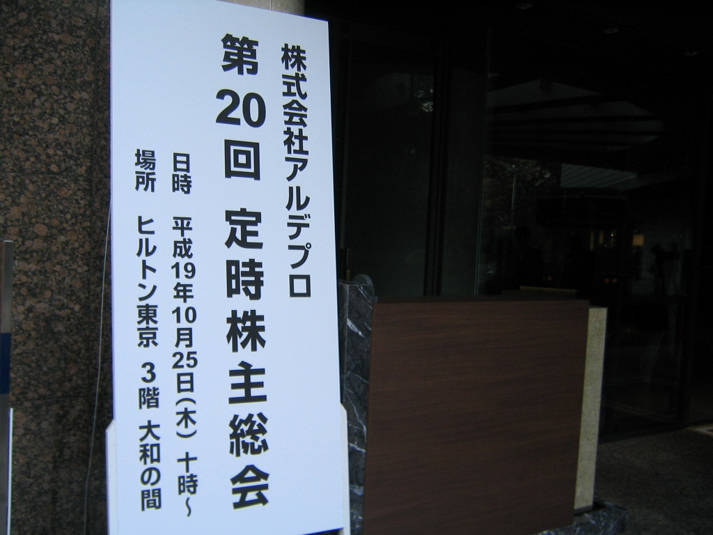 午前中はアルデプロの株主総会に行ってきました。株主総会に参加するのは初めてです。開催場所は絢爛豪華なヒルトン東京。参加者は多分150人くらいで、ほとんどが年配の方でした。
