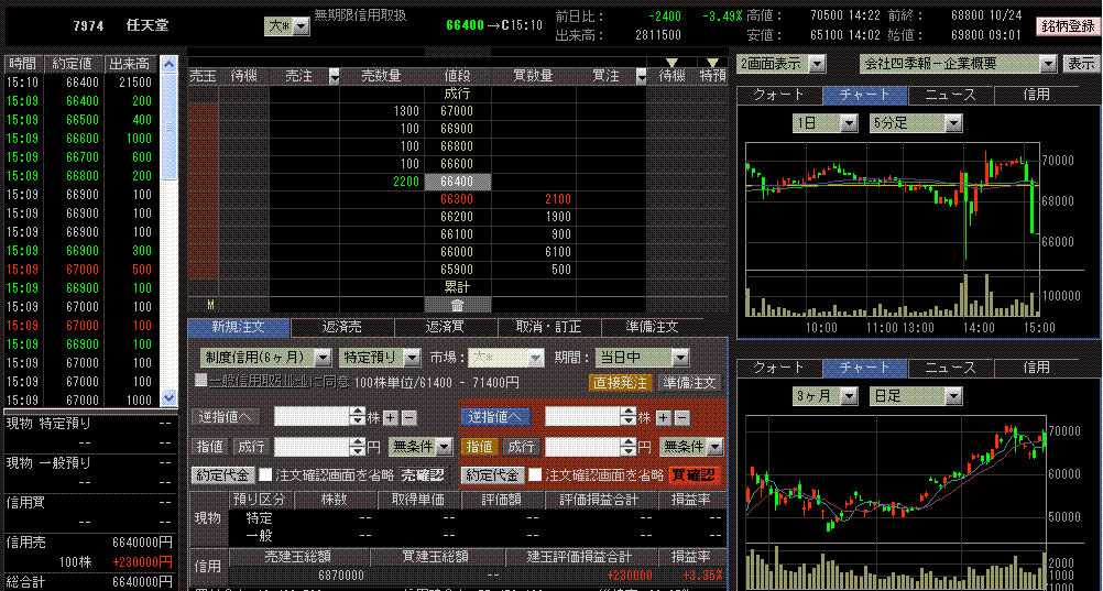 期待されていた通期業績上方修正を行いましたが、何というか微妙な結果でした。上方修正後でPER32くらい。来期もさらに業績が伸びるならまだ買えるけど、現時点ではやっぱ割高かなぁ・・・といった感じで、株価も乱高下しました。日経平均先物も任天堂の上げ下げの影響を受けてました。