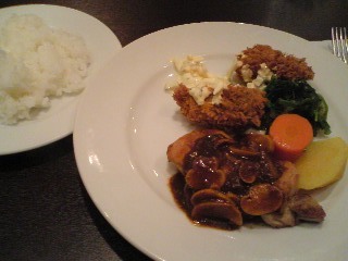 チキンソテーは上にマッシュルームのデミグラスソースがかかっていて、こちらも美味☆