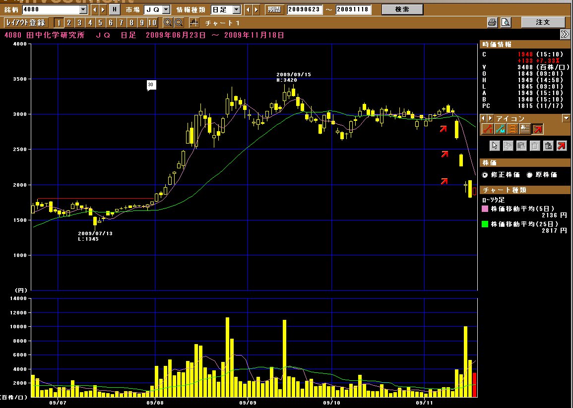 4080:田中化学が、急落しちゃったあー