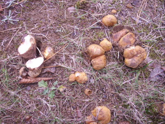 写真2:収穫したショウロ 触ったところは赤っぽくなります