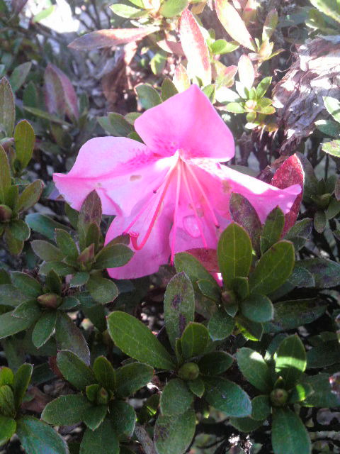 今日博物館に行ったところ、庭園で一輪だけツツジが咲いていました。