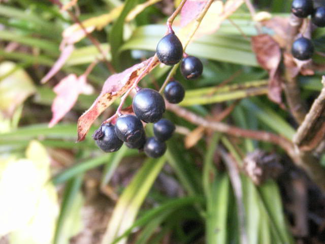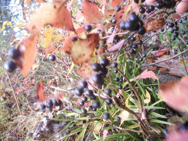 パチンコ玉のようにまんまるで、模様が入った玉です。ナツハゼの実です。いっぱい成ってる!!