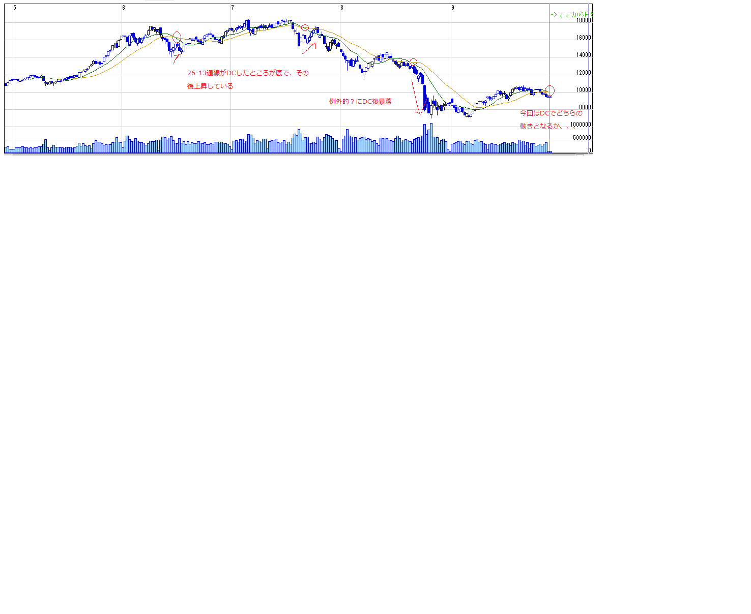 ☆13-26週線がDCしたので本格的な下げになる、、、とフィスコにあったので、過去チャートを調べてみました(画像1)