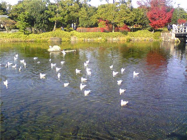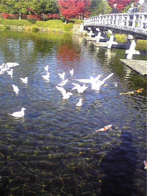 とり、ユリカモメ:ユリカモメの鯉との餌の取り合い。この時期すごく増えます。海が近いのでこんなとこにいるのでしょう。