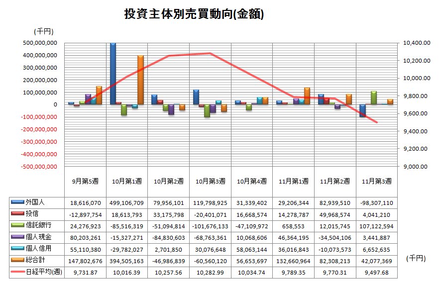 日経平均は、272円63銭、2.79%の大幅な下落。