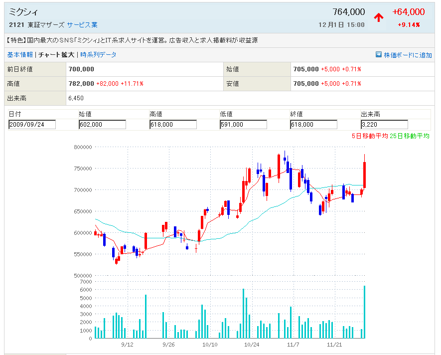 例の株がドカッと上がってな