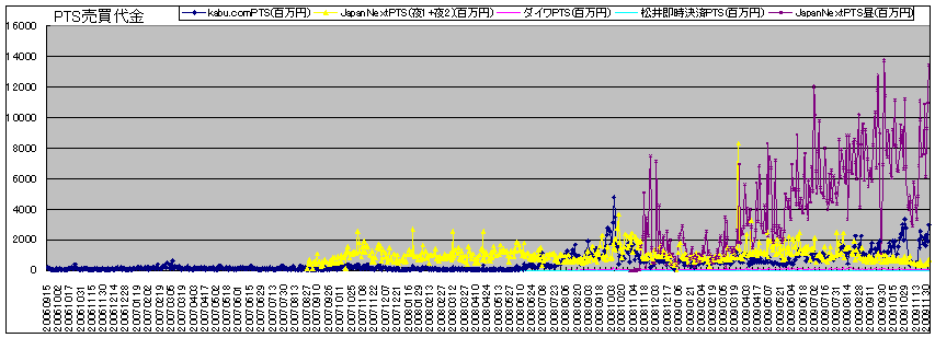 この間、JapanNextPTSとkabu.comPTSの売買代金が激減しました。