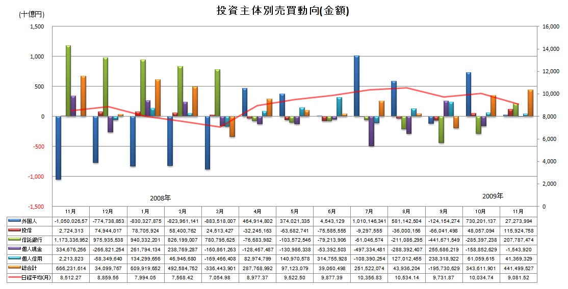 信託銀行は2077億円と先月までの大幅な売り越しから
